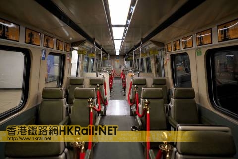 被保存下來的前九廣鐵路第一代電氣化列車 E44 頭等車廂內部,於紅磡站「站見」鐵...