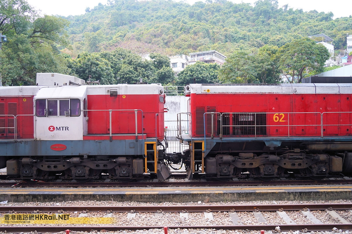 剛退役的東鐵綫 GM G16柴油機車 58號(Gordon Graham) 及 GM G26CU柴油機車 62號,於2021年2月9日凌晨,自力移到前沙田貨場臨時存放