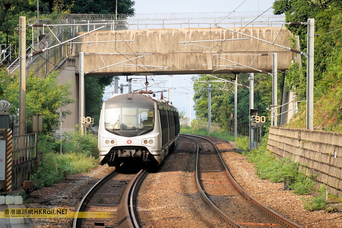一列行走東鐵綫前往上水方向的MLR列車(E100)正離開大學站