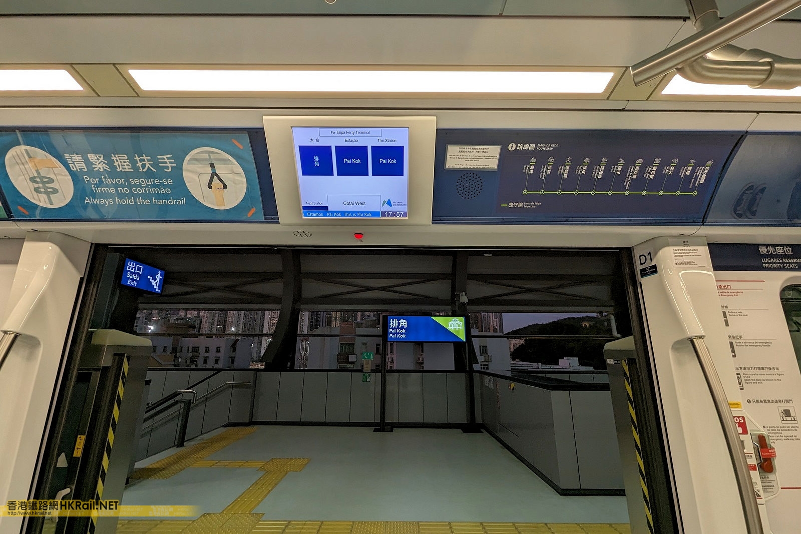 相片集 澳門輕軌氹仔綫所使用的膠輪路軌系統列車濱海巡航 (Ocean Cruiser) 車門位置,上方設有顯示屏 拍攝地點 列車上 (查看地圖) 拍攝器材 Pixel 7 Pro 拍攝日期 2023-11-16 上載日期 2023-12-17 參考編號 P011533 點擊率 388 分類標籤 鐵路車輛 地鐵 電力動車組 EMU 澳門 永久連結 https://www.hkrail.net/Photos/11533/ » 更多相關相片 « 返回前頁 注意:為保障私隱,二零零八年或以後拍攝的照片,在上載時將盡可能將非必要之人臉模糊處理