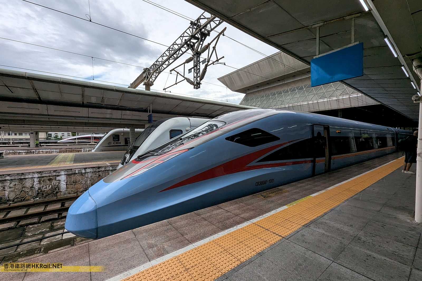 行走廣深線前往香港西九龍方向的G6559次的廣州局集團CR300AF-1001 復興號電力動車組正準備從廣州東站開出