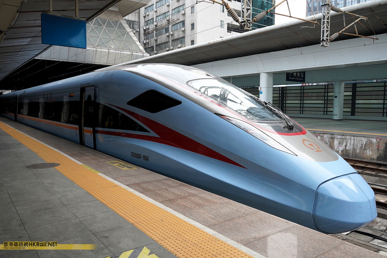 從香港西九龍站開出,行走廣深港高鐵及廣深線G6546次的廣州局集團 CR300AF-1004 電力動車組剛抵達廣州東站