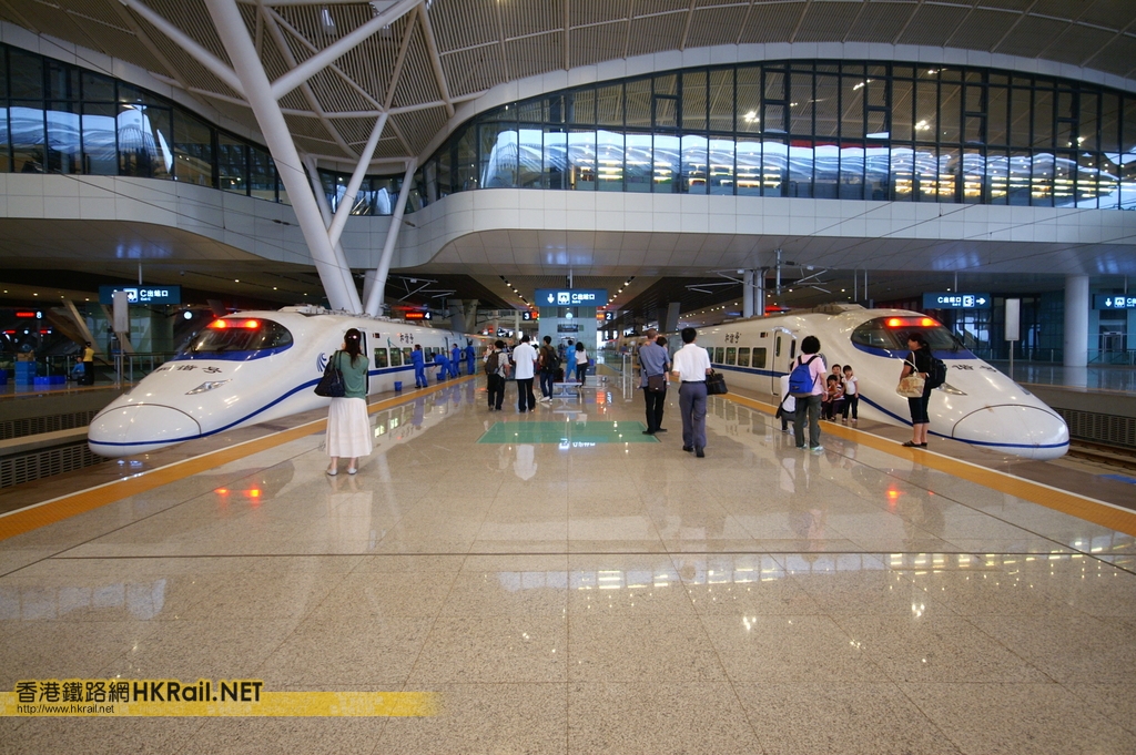 兩列於武漢站的CRH2C動車組 (CRH2 080C(左)及CRH2 069C(右))