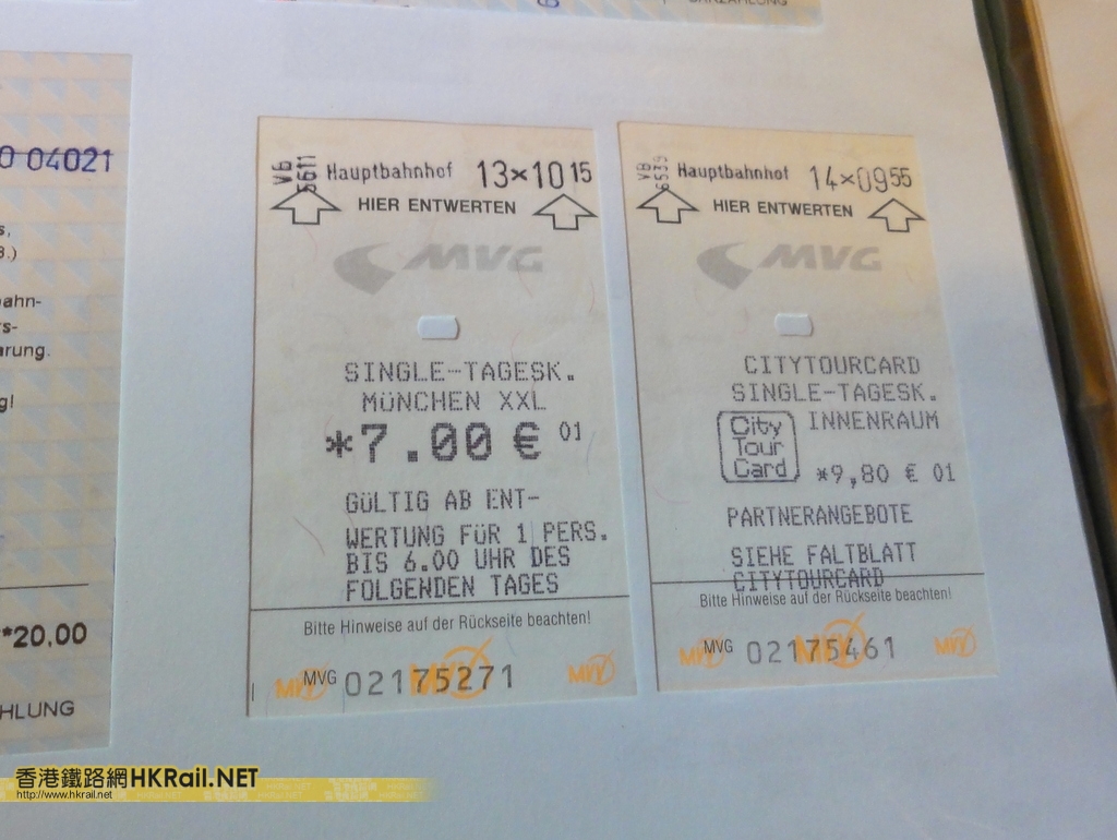 München XXL day ticket (left) and the one day inner district City Tour Card (right) of the München (Munich) public transport network