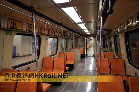 被保存下來的前九廣鐵路第一代電氣化列車 E44 普通等車廂內部,於紅磡站「站見」...