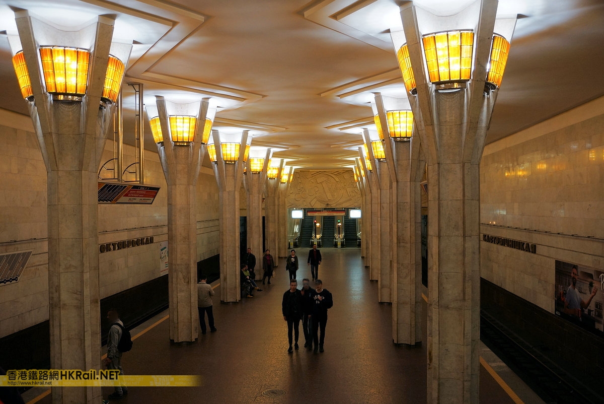 The island platform of line 1 at Станция Метро Октябрьская (Kastryčnickaja Metro Station), Мінскі метрапалітэн (Minsk Metro)