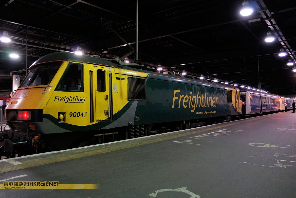 The Freightliner's Class 90/0 (90 043) electric locomotive hauled Scotland bound Caledonian Sleeper 1S25/1A25 service was ready to depart from London Euston