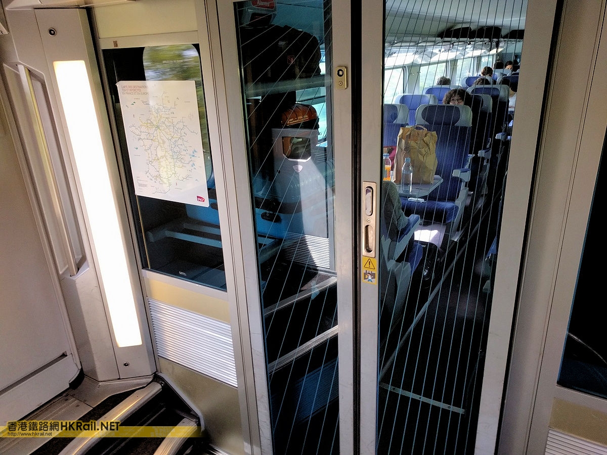 The standard class compartment on the lower deck of the SNCF TGV Dasye bi-current trainset