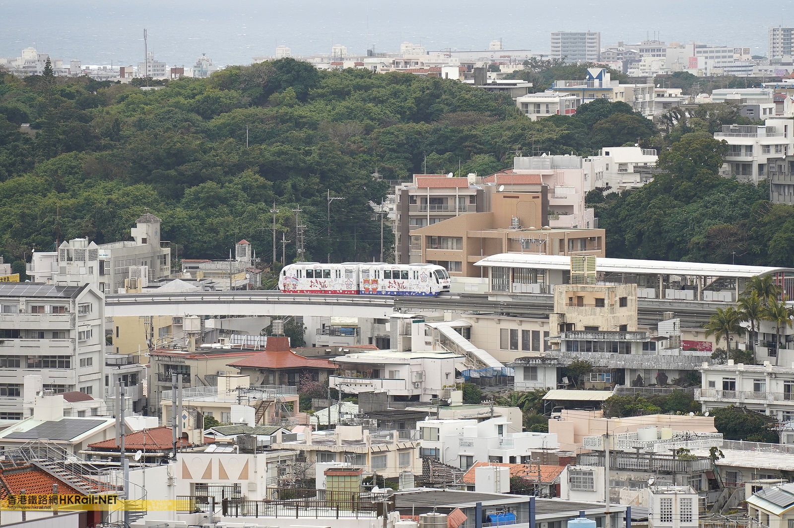 行走沖縄都市モノレール線的1000型電力動車組正前往儀保駅途中