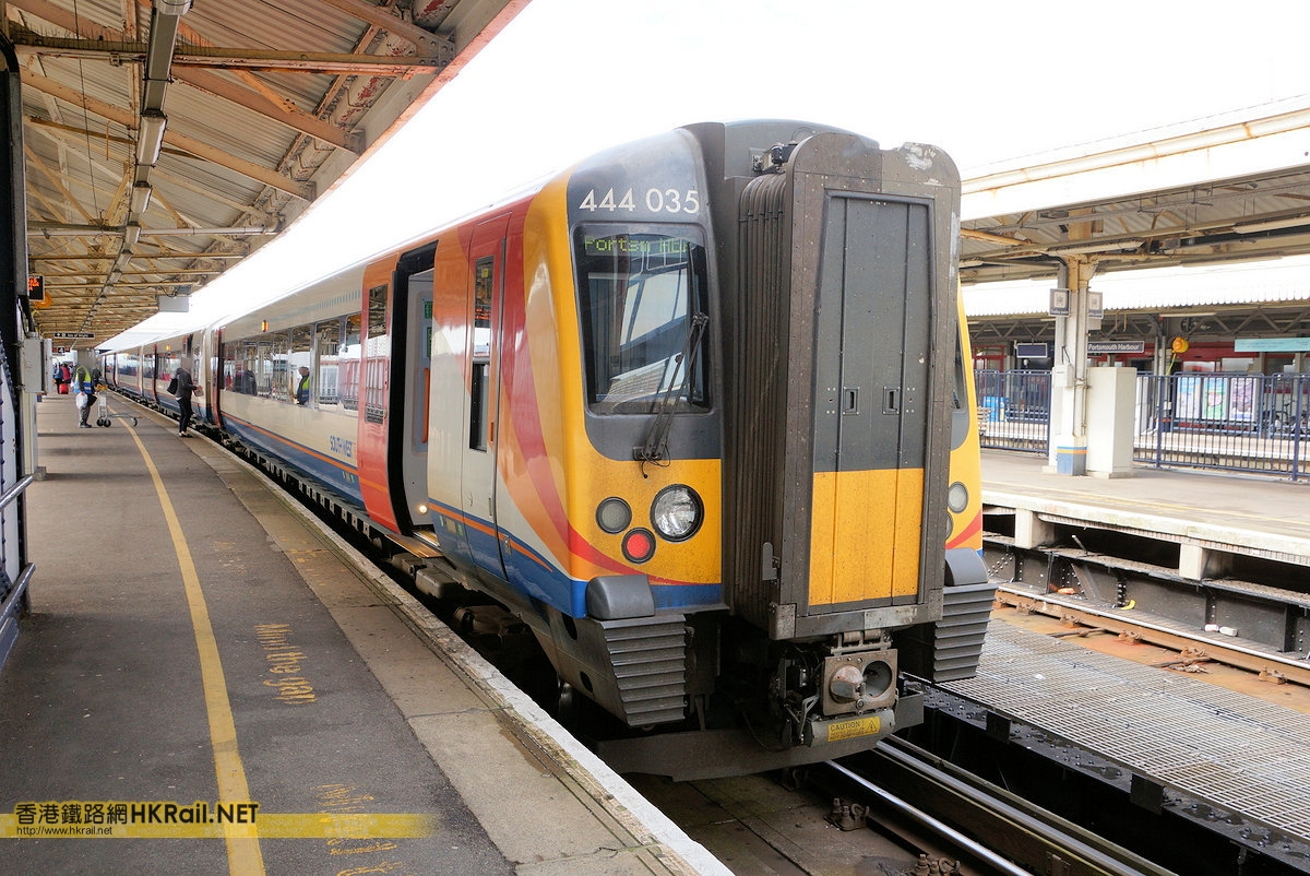 The 1P29 service by South West Trains's Class 444 (444 035) "Desiro" electric multiple unit just arrived and terminated at Portsmouth Harbour Station