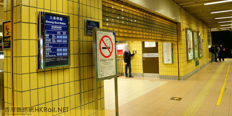 回到南行月台旁的入口,九鐵員工已開始將捲閘放下,為南行尾班車的做好準備。